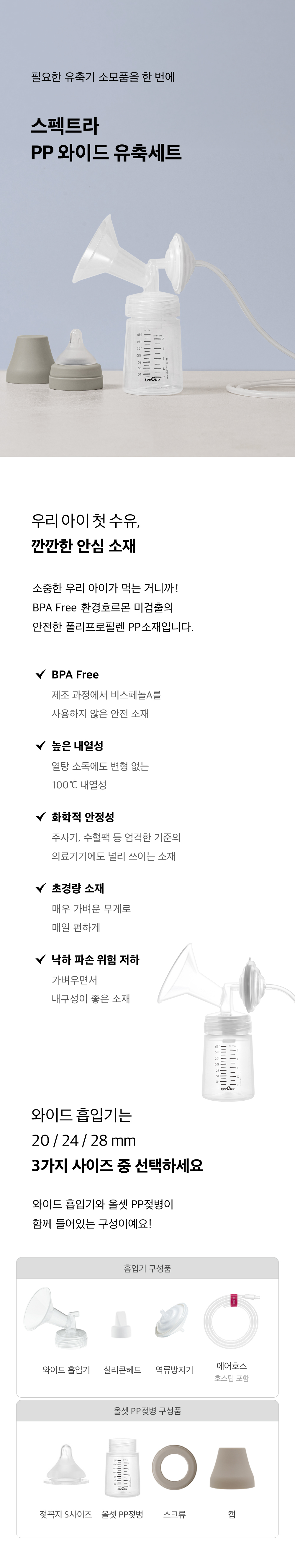 이미지 확대보기PP 와이드 유축세트 | 와이드 흡입기, 올셋 PP젖병 구성