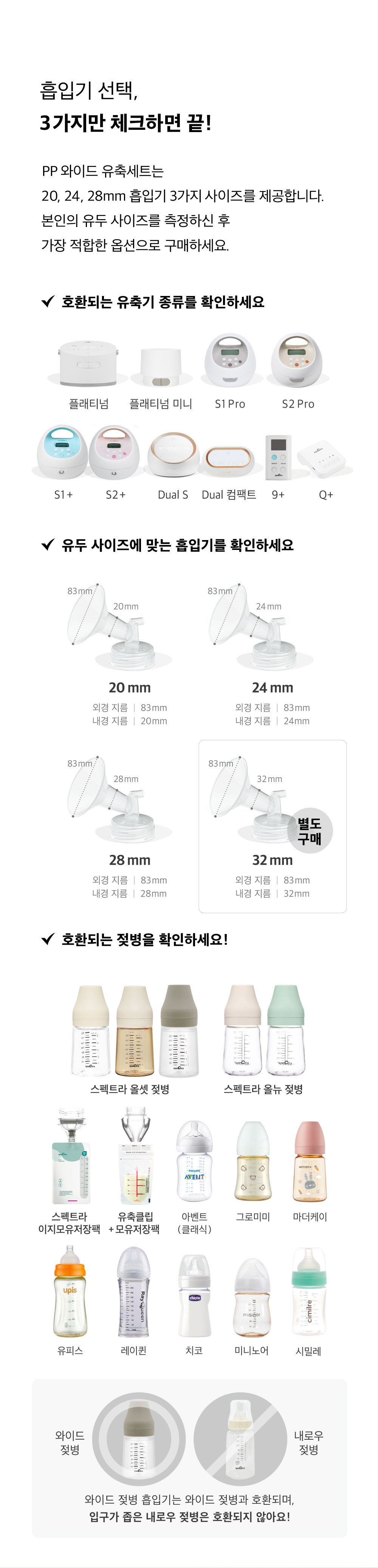 PP 와이드 유축세트 | 와이드 흡입기, 올셋 PP젖병 구성